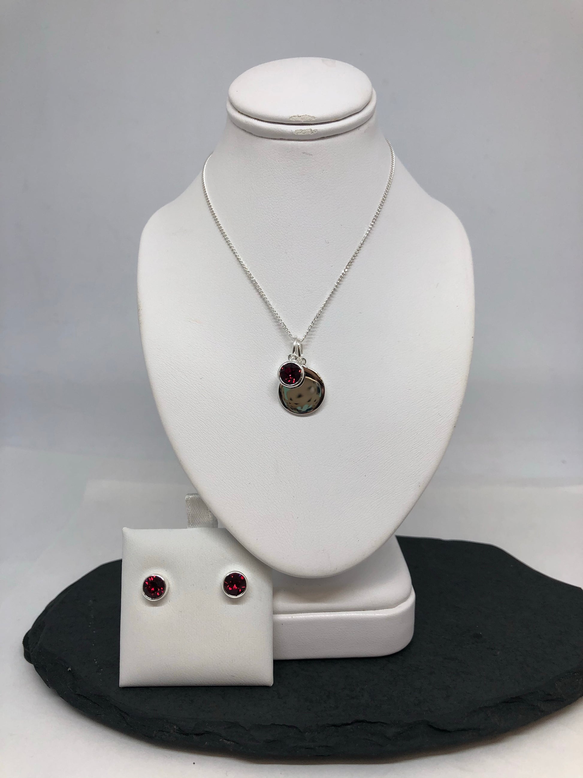 The July birthstone is Ruby. Celebrate your birth month with this fabulous necklace. Circle pendant with hanging birthstone. Pendant is engravable.